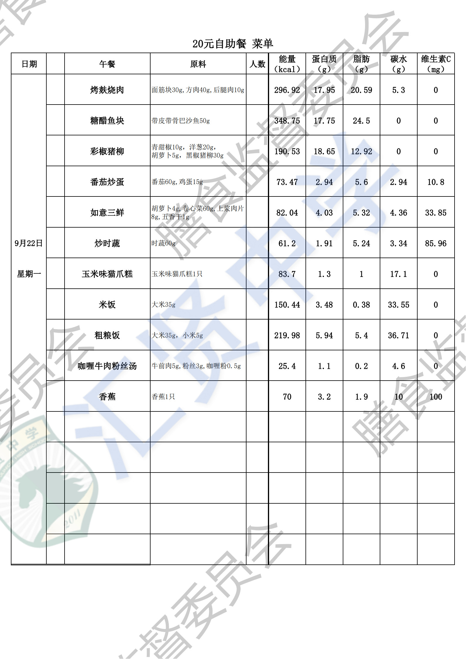 奉浦中学9.15-9.19菜单